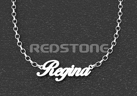 Retiazka s menom z chirurgickej ocele v lesklom prevedení.