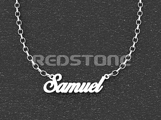 Retiazka s menom z chirurgickej ocele v lesklom prevedení.