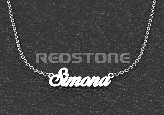 Retiazka s menom z chirurgickej ocele s lesklým povrchom.