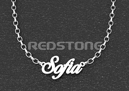 Retiazka s menom z chirurgickej ocele s lesklým povrchom.