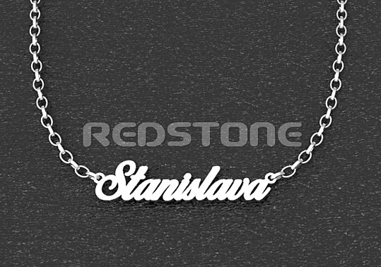 Retiazka s menom z chirurgickej ocele s lesklým povrchom.