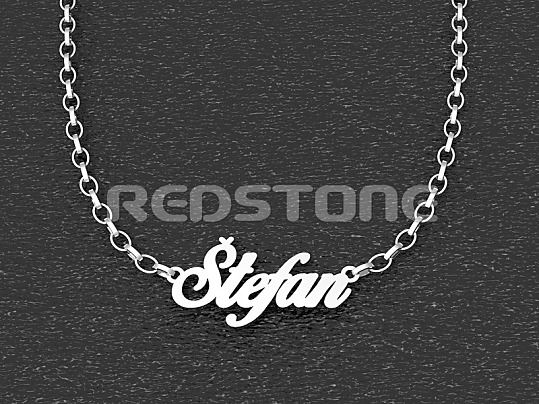 Retiazka s menom z chirurgickej ocele v lesklom prevedení.
