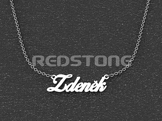 Retiazka s menom z chirurgickej ocele v lesklom prevedení.
