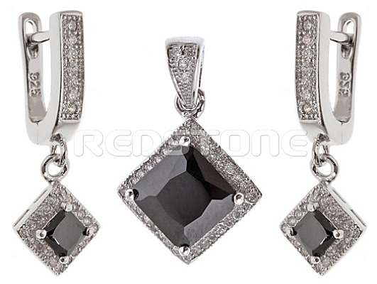 Sada strieborných rhodiovaných šperkov v kombinácii s mikro zirkónmi a ónyxom.