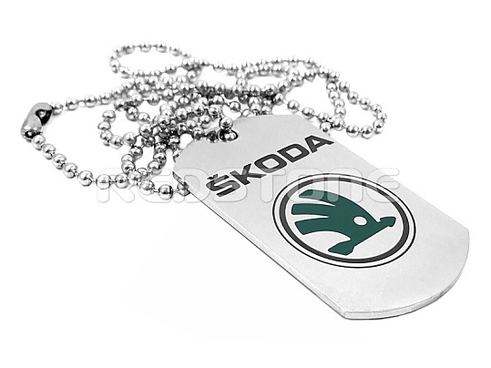 Jednostranná vojenská známka v lesklom prevedení s vygravírovaným logom ŠKODA.