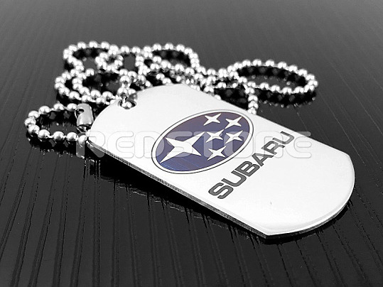 Jednostranná vojenská známka v lesklom prevedení s vygravírovaným logom SUBARU.