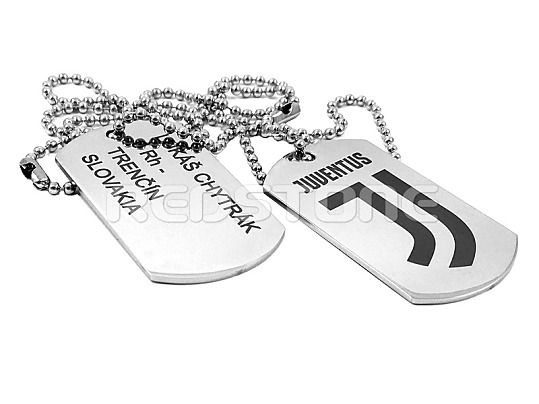 Sada jednostranných vojenských známok v matnom prevedení s jednou známkou s vygravírovanými Vašimi údajmi a s druhou známkou s vygravírovaným logom JUVENTUS.