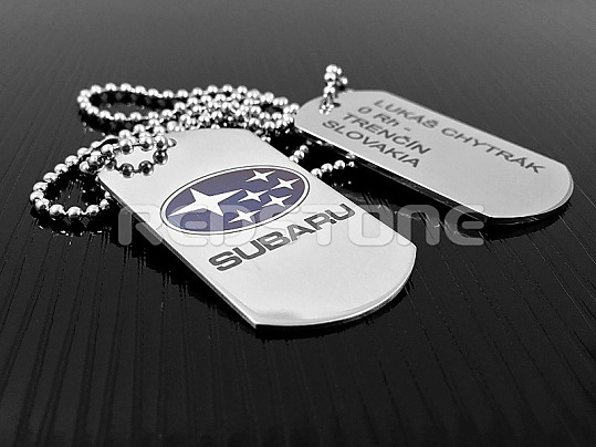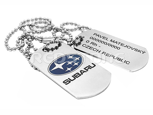 Sada jednostranných vojenských známok s vygravírovanými údajmi, prípadne akýmkoľvek Vami požadovaným textom a s druhou známkou s logom SUBARU